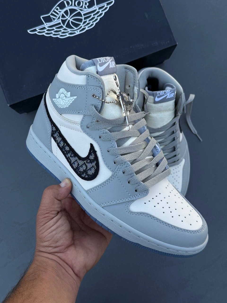 کتونی نایک ایر جردن وان دیور خاکستری Nike Air Jordan1 Dior